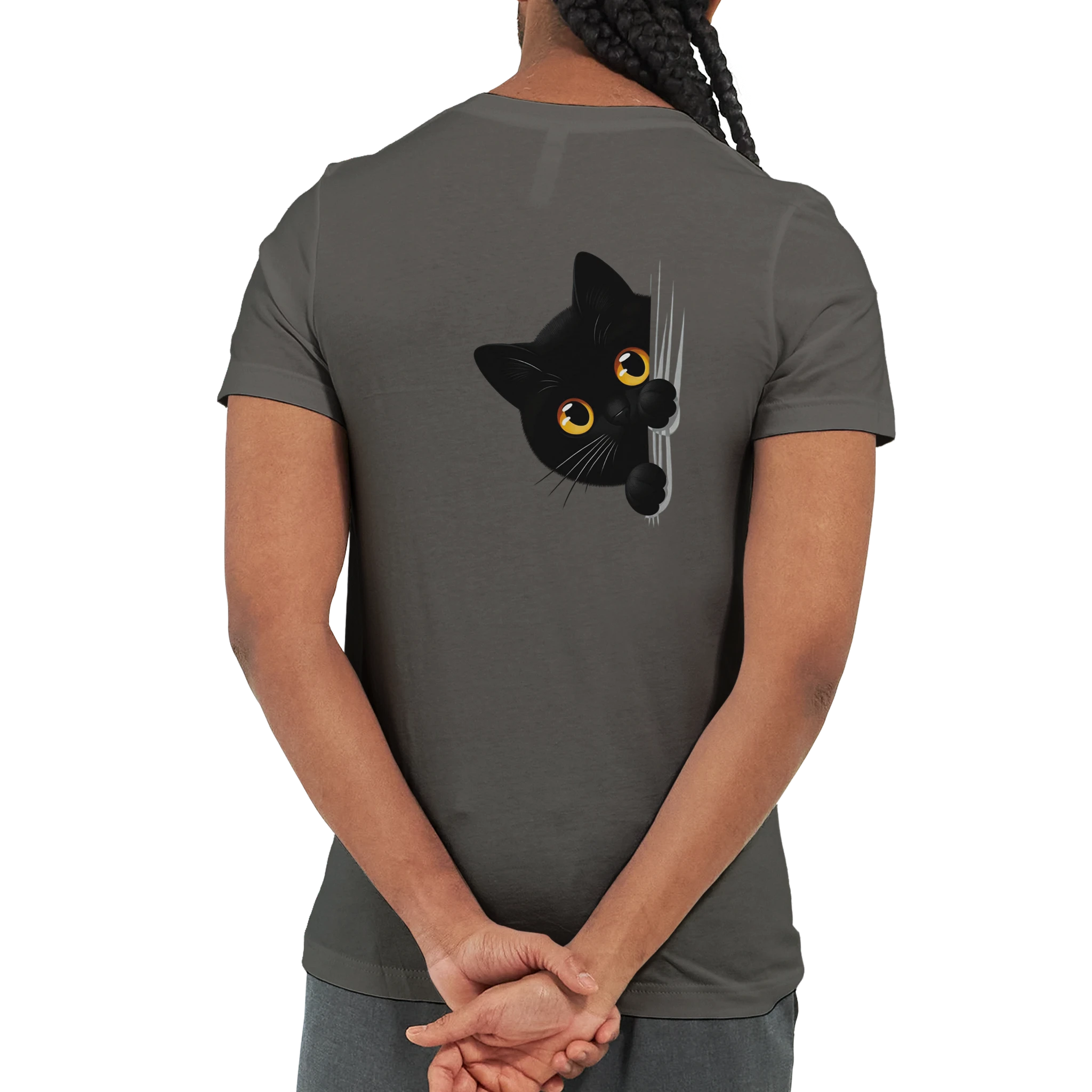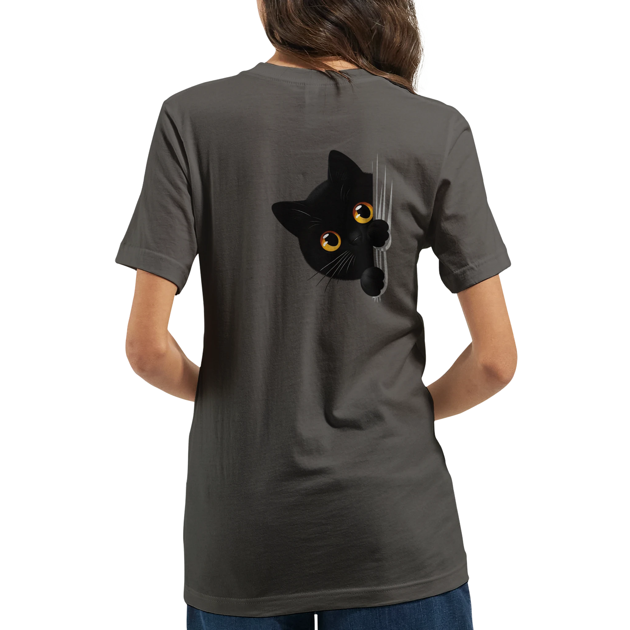 Budget Unisex Crewneck T-shirt/Black Cat Peeking-K