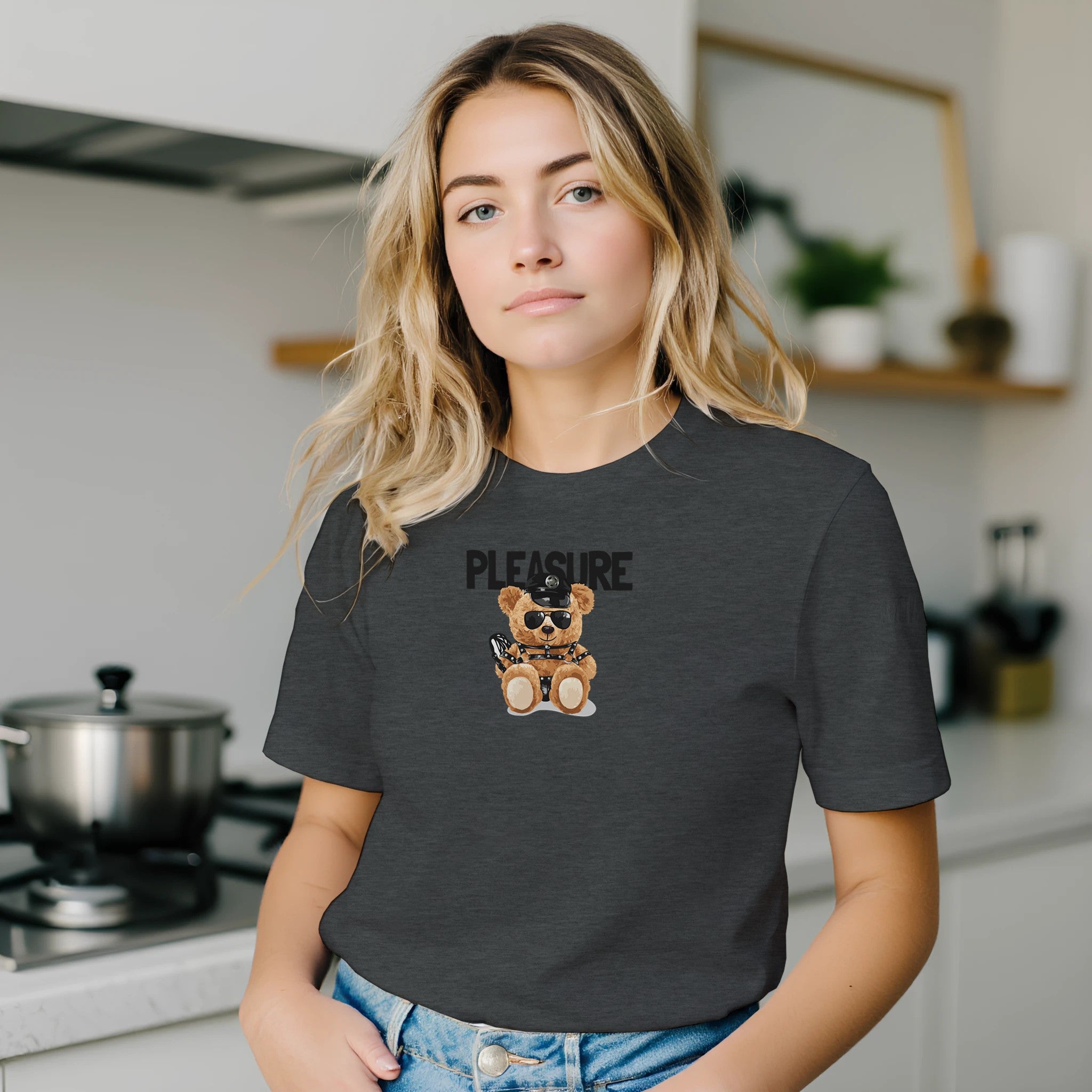 Budget Unisex Crewneck T-Shirt/Edgy Teddy Bear 'The Pleasure is All Mine' /Express Your Bold Side with Unique Style