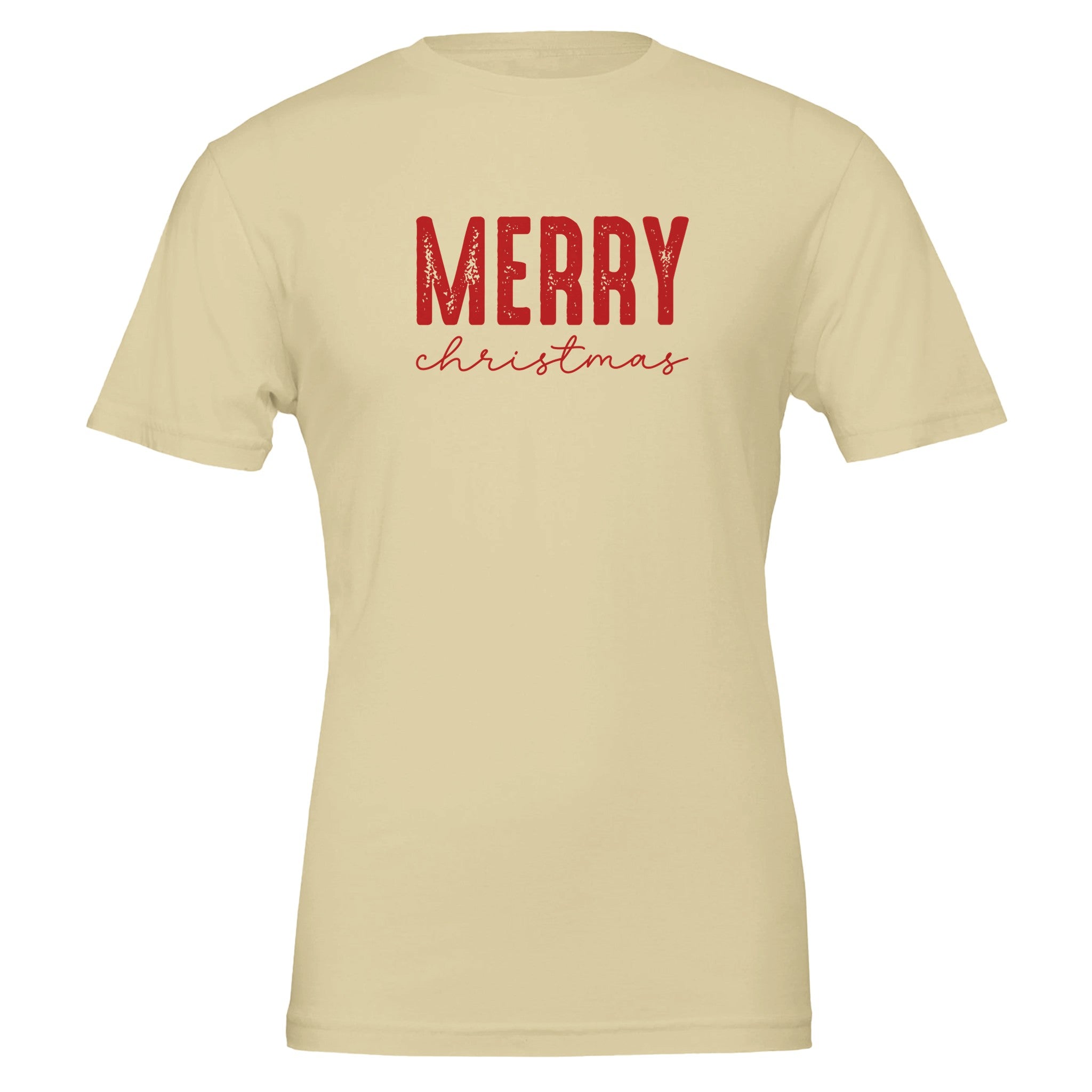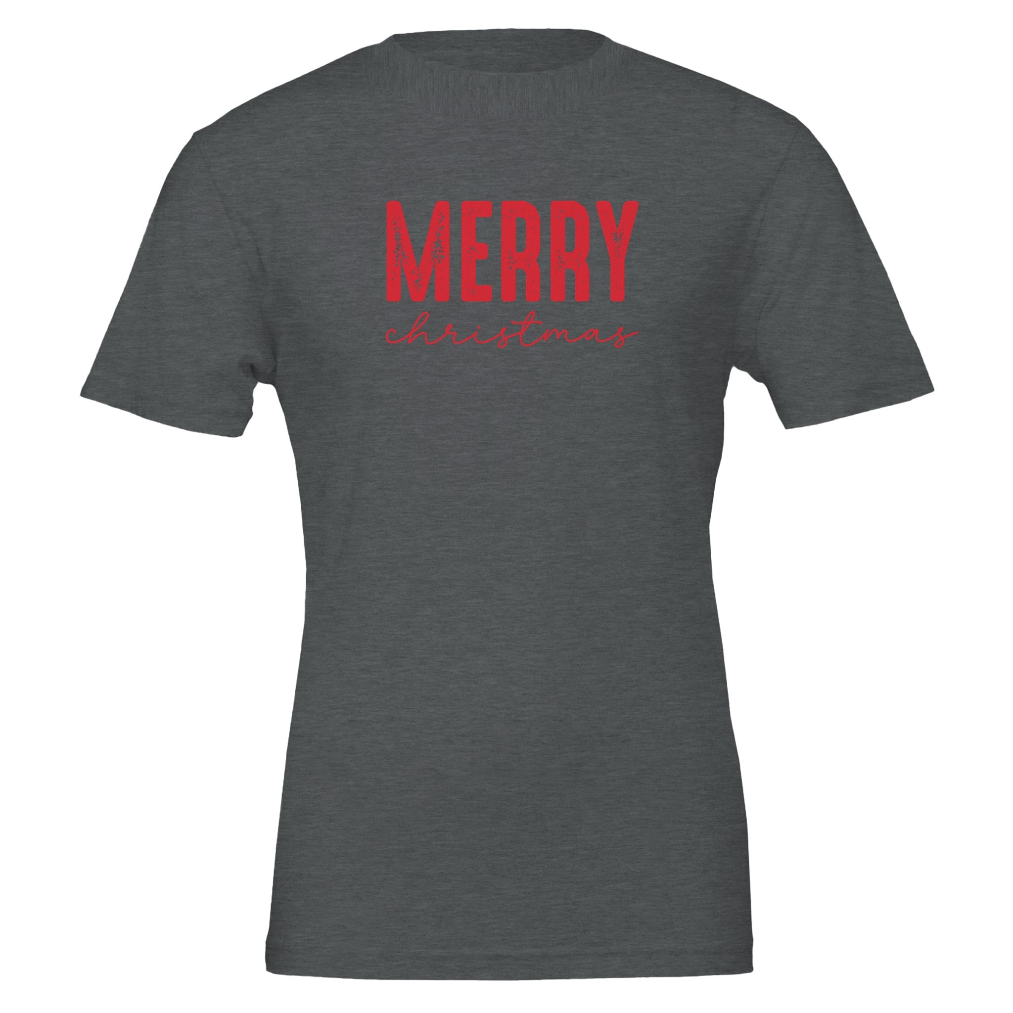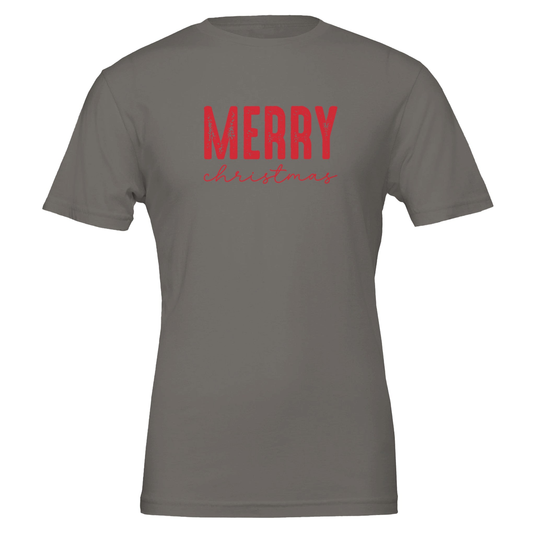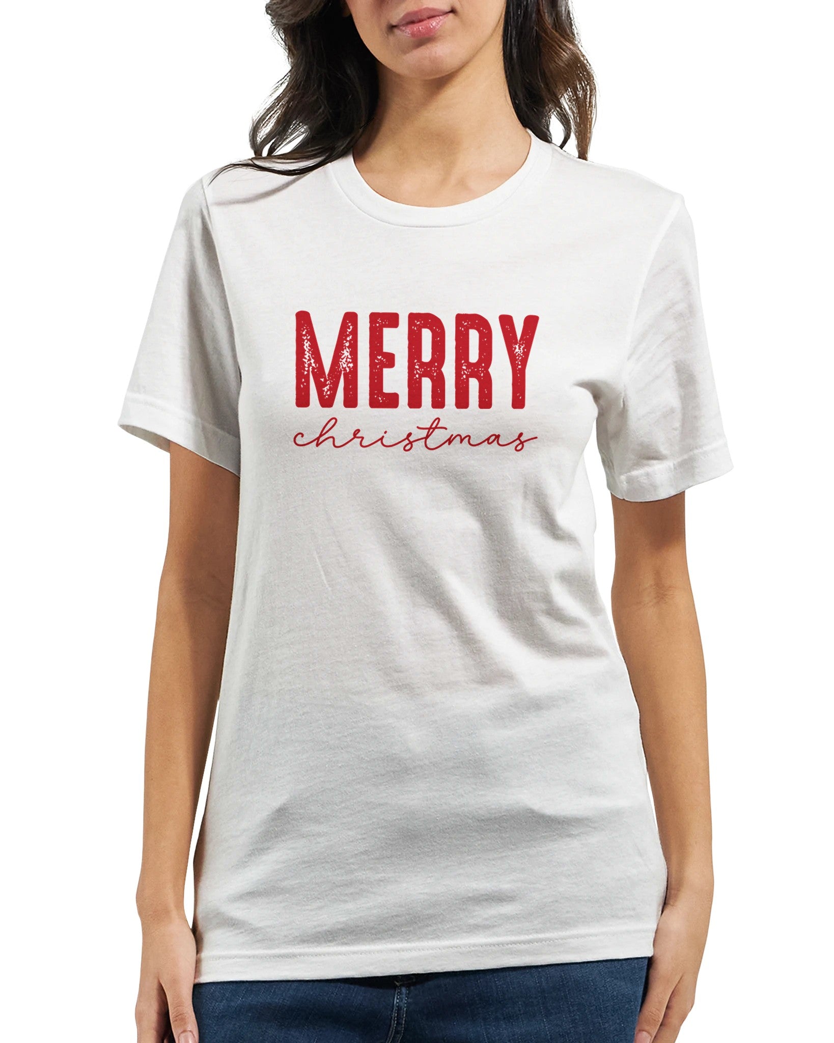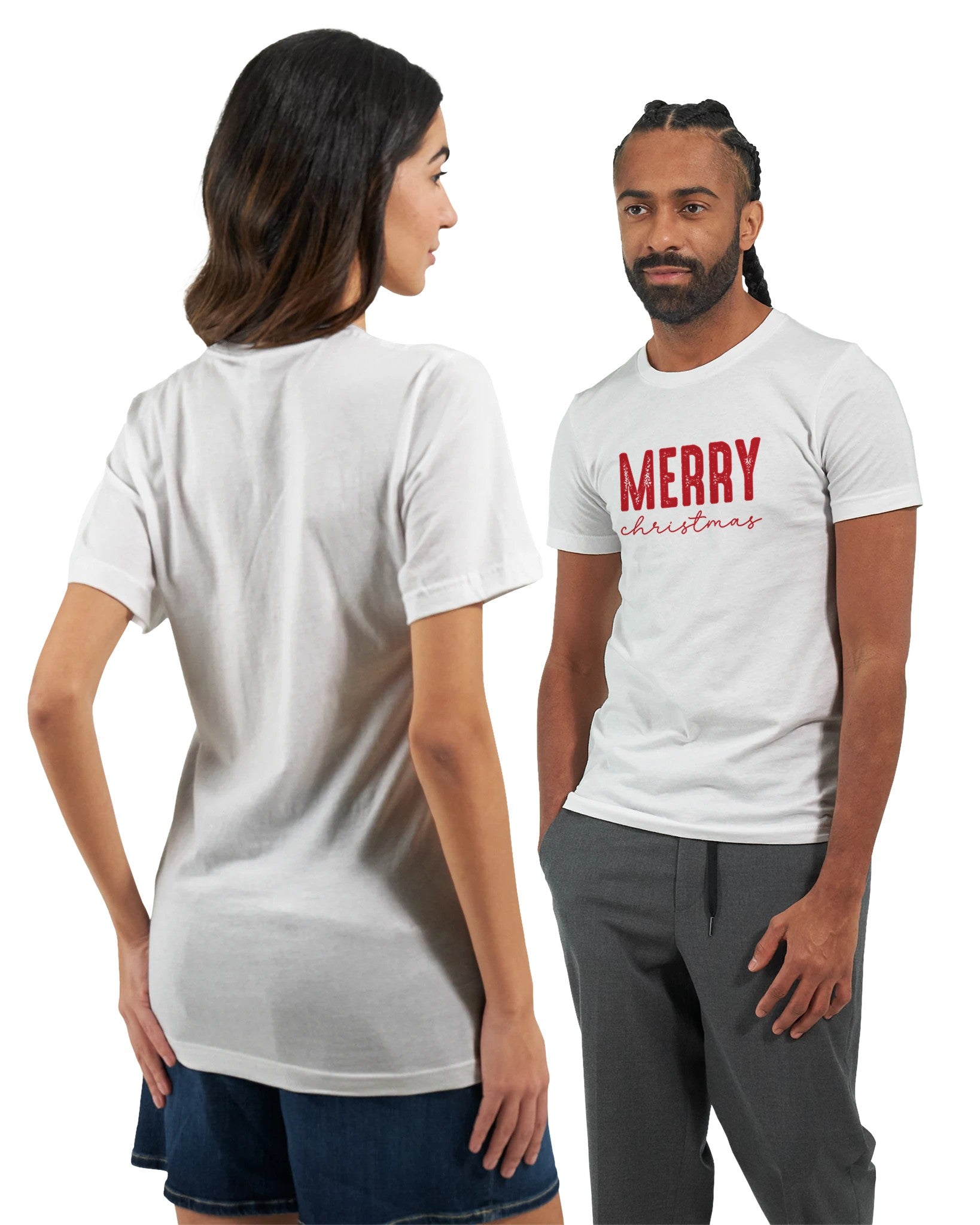 Spread holiday cheer with our exclusive "Merry Christmas" unisex t-shirt! Featuring a vibrant red, distressed font for "MERRY" and an elegant, flowing script for "christmas," this tee captures the perfect blend of playful spirit and classic holiday charm. It’s ideal for festive gatherings, cozy family nights, or as a thoughtful gift.