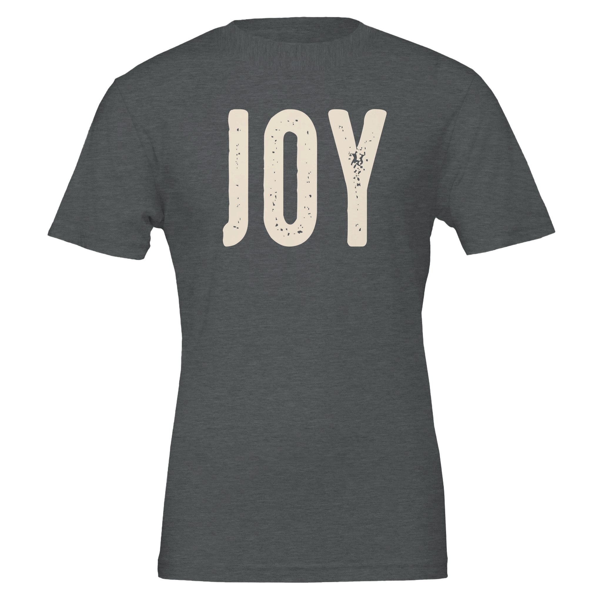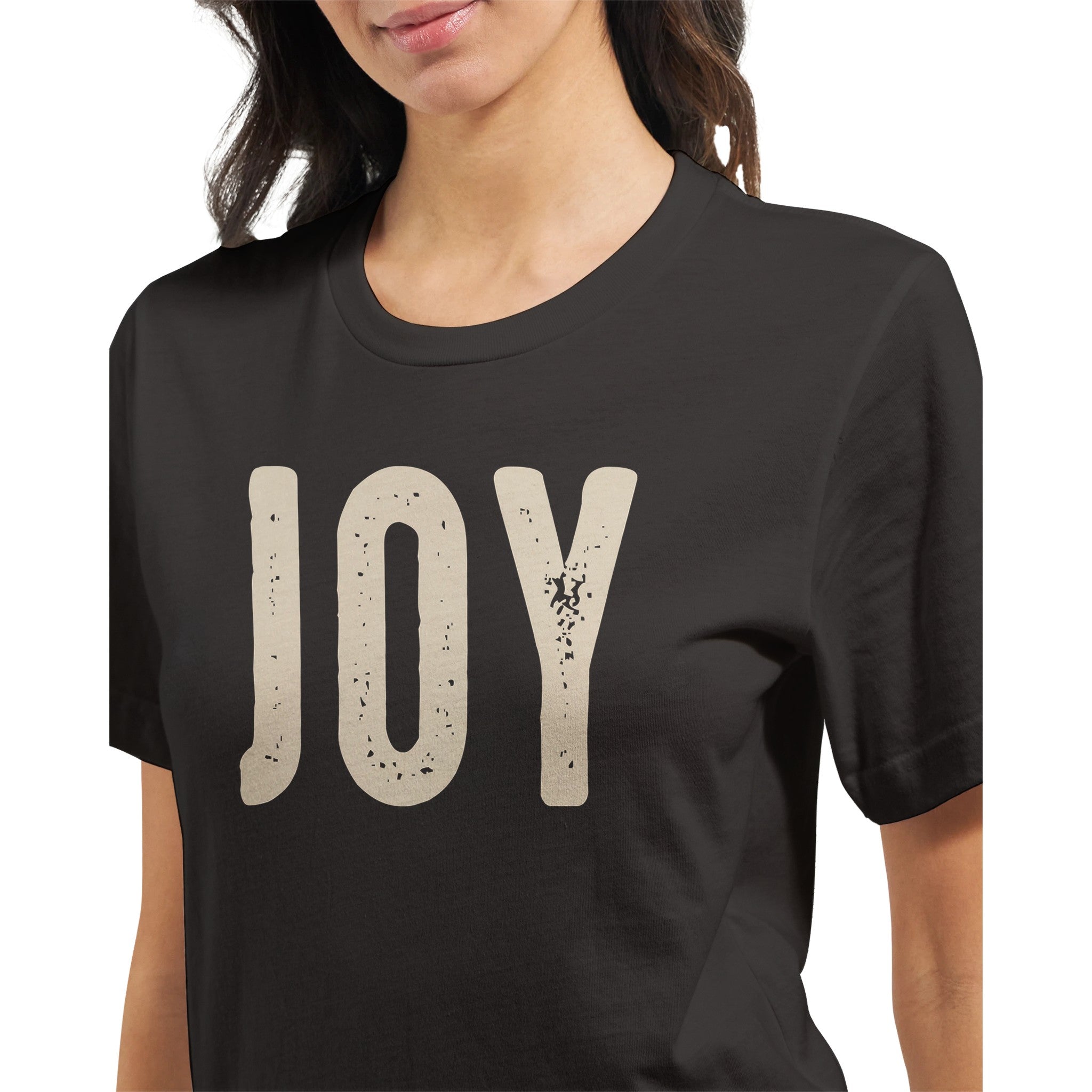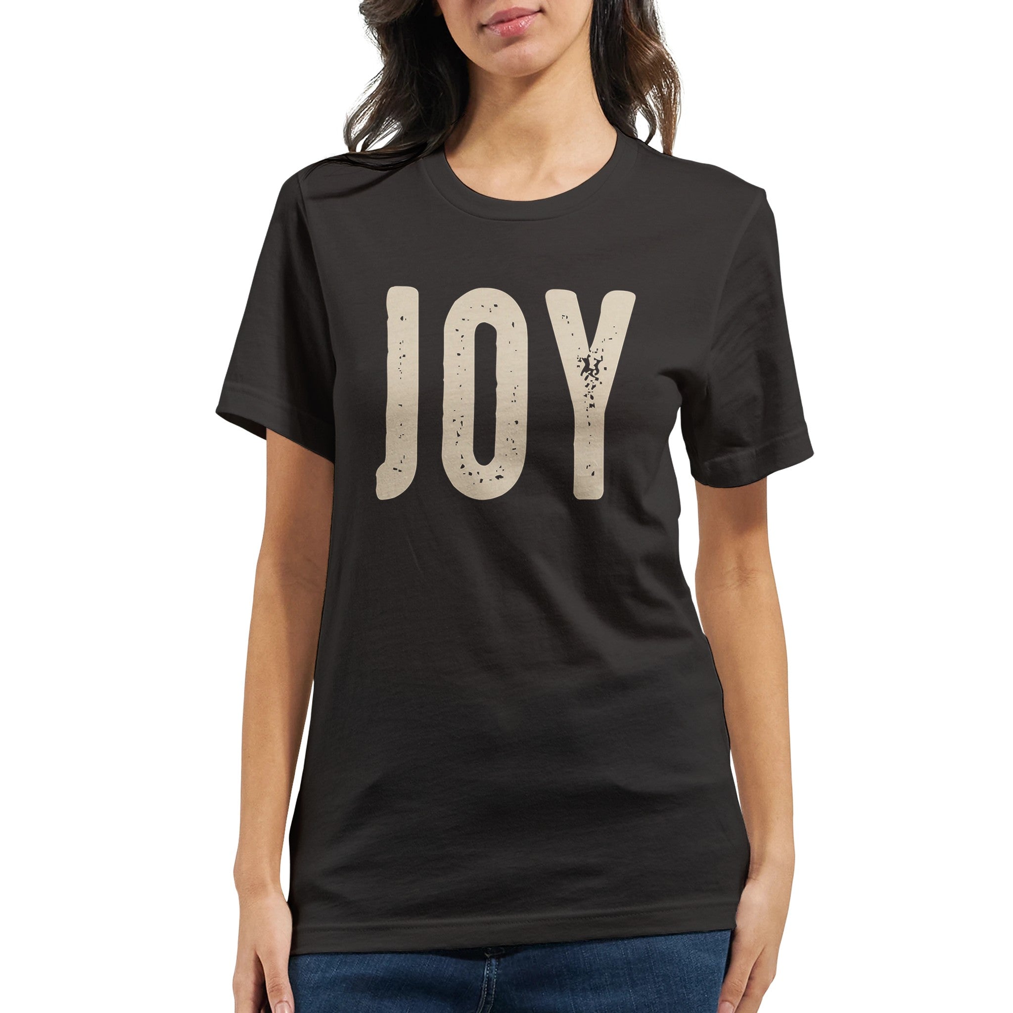 Spread a little happiness with our "Joy" distressed lettering t-shirt. The simple, elegant design with a subtle vintage feel makes a powerful statement. Renowned for its soft feel and sturdy construction, this tee is perfect for everyday wear and a canvas for vibrant, lasting prints.