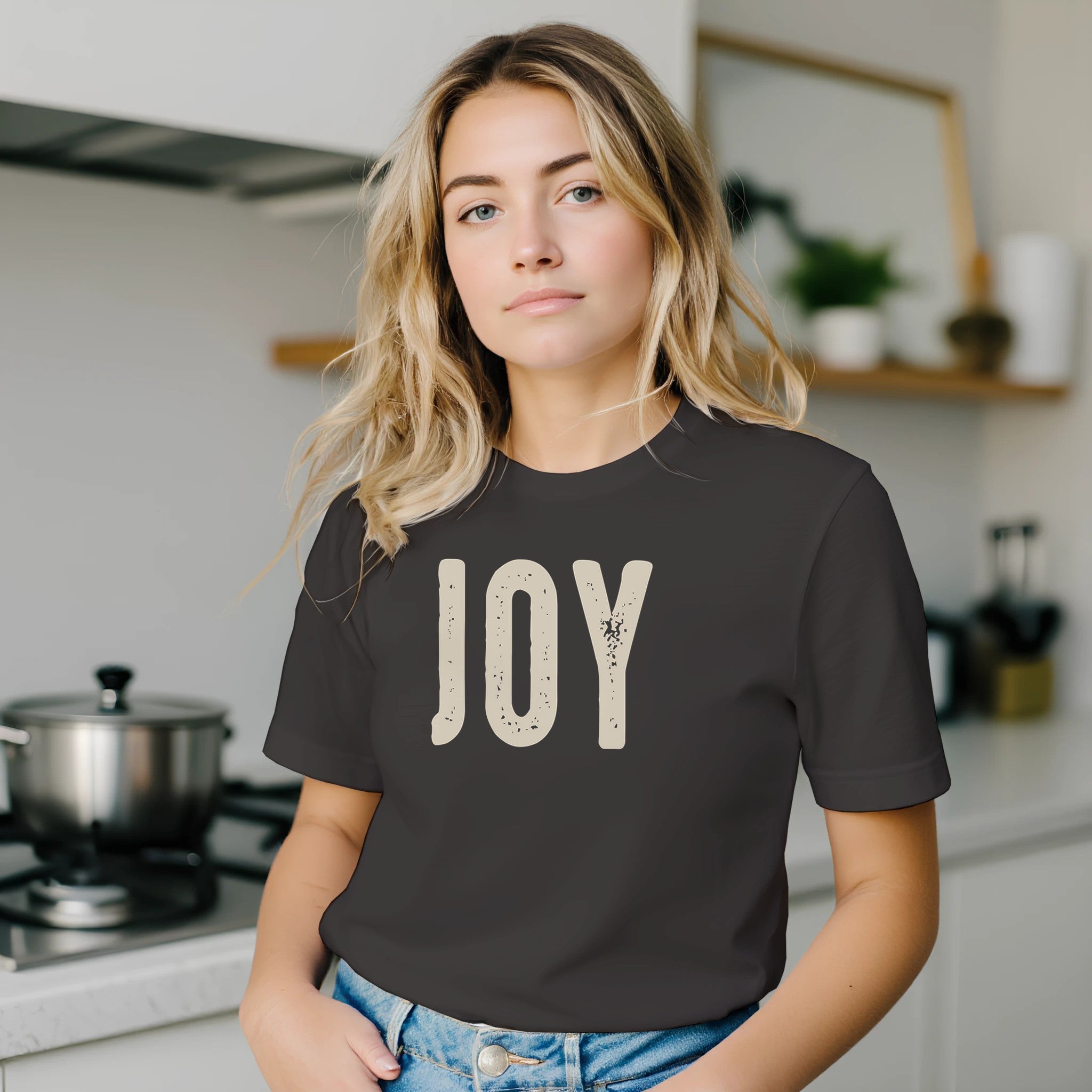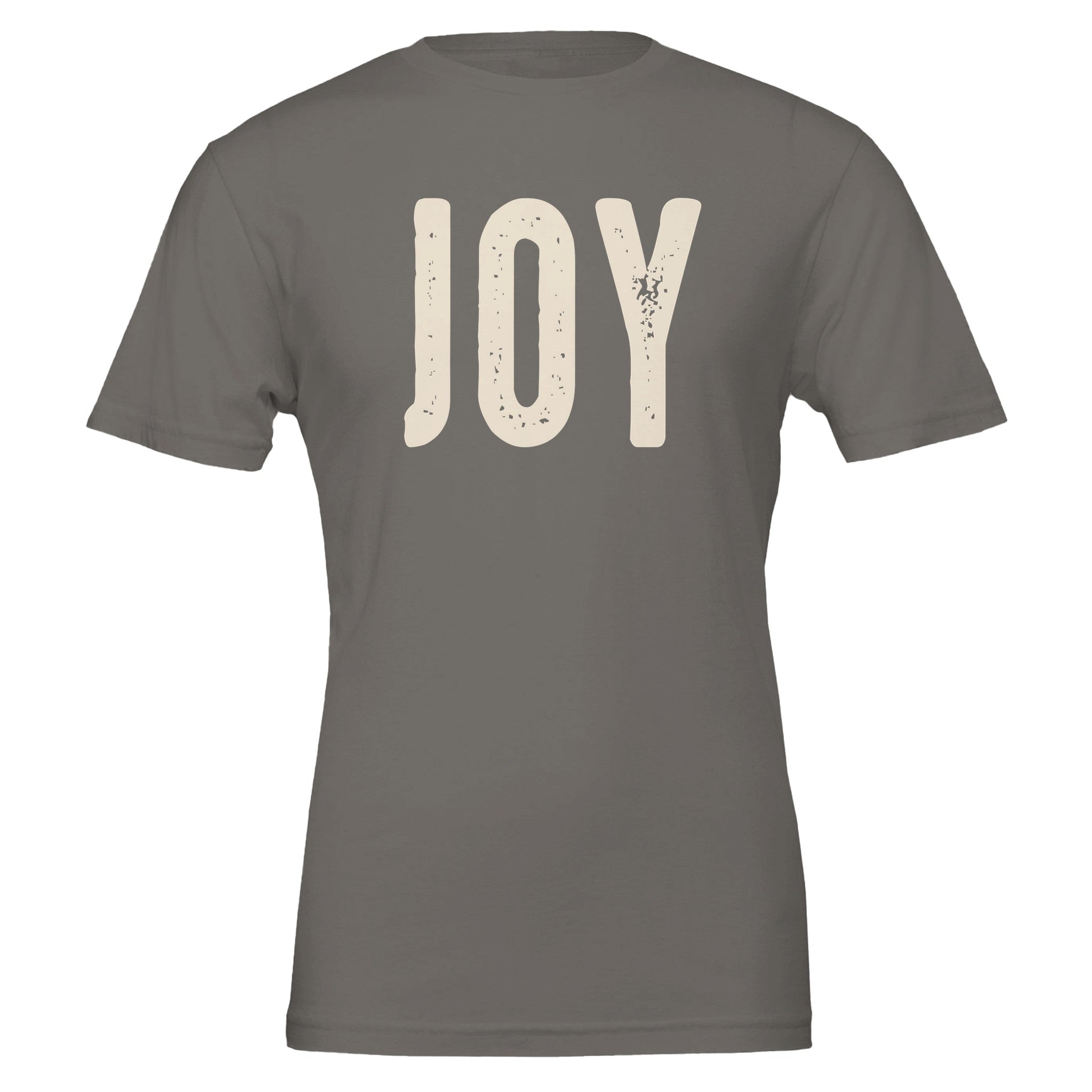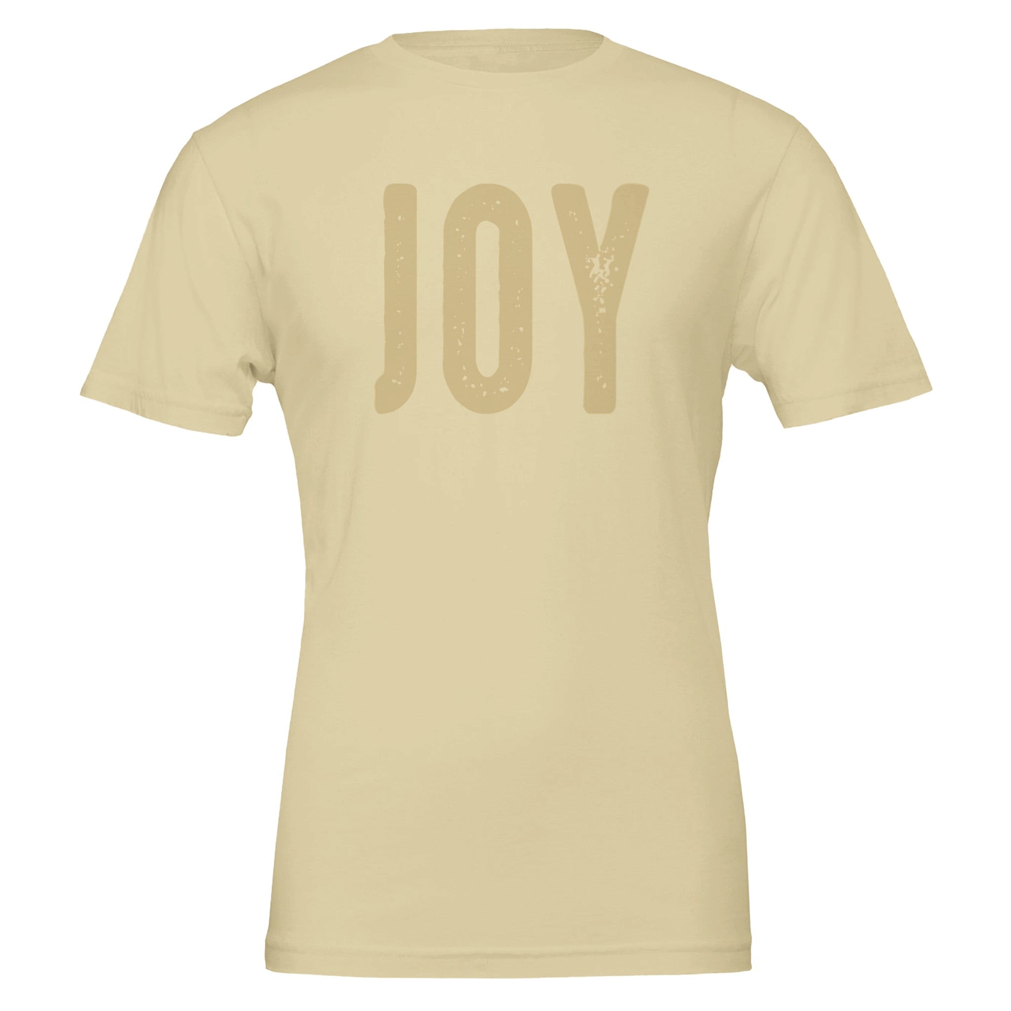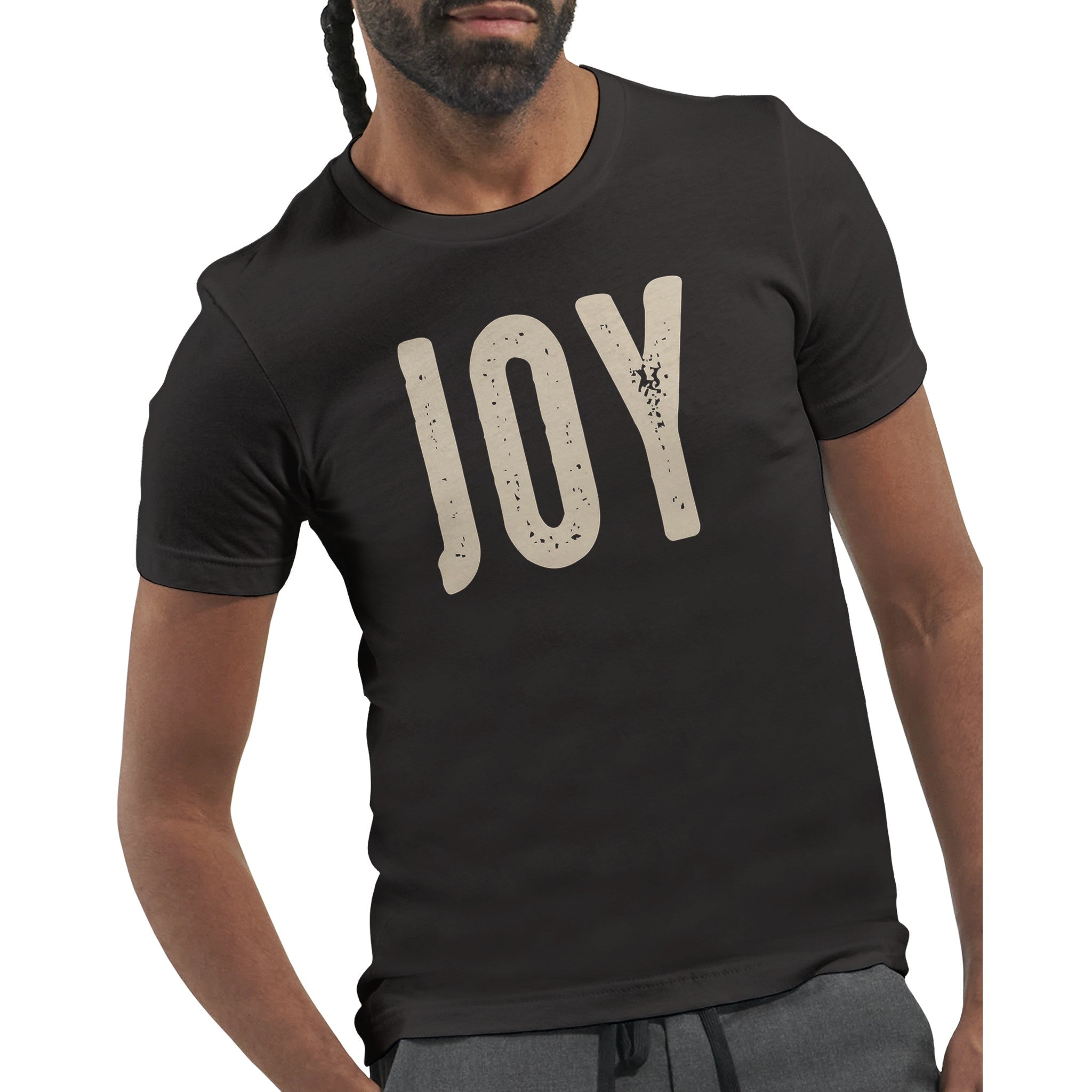 Spread a little happiness with our "Joy" distressed lettering t-shirt. The simple, elegant design with a subtle vintage feel makes a powerful statement. Renowned for its soft feel and sturdy construction, this tee is perfect for everyday wear and a canvas for vibrant, lasting prints.
