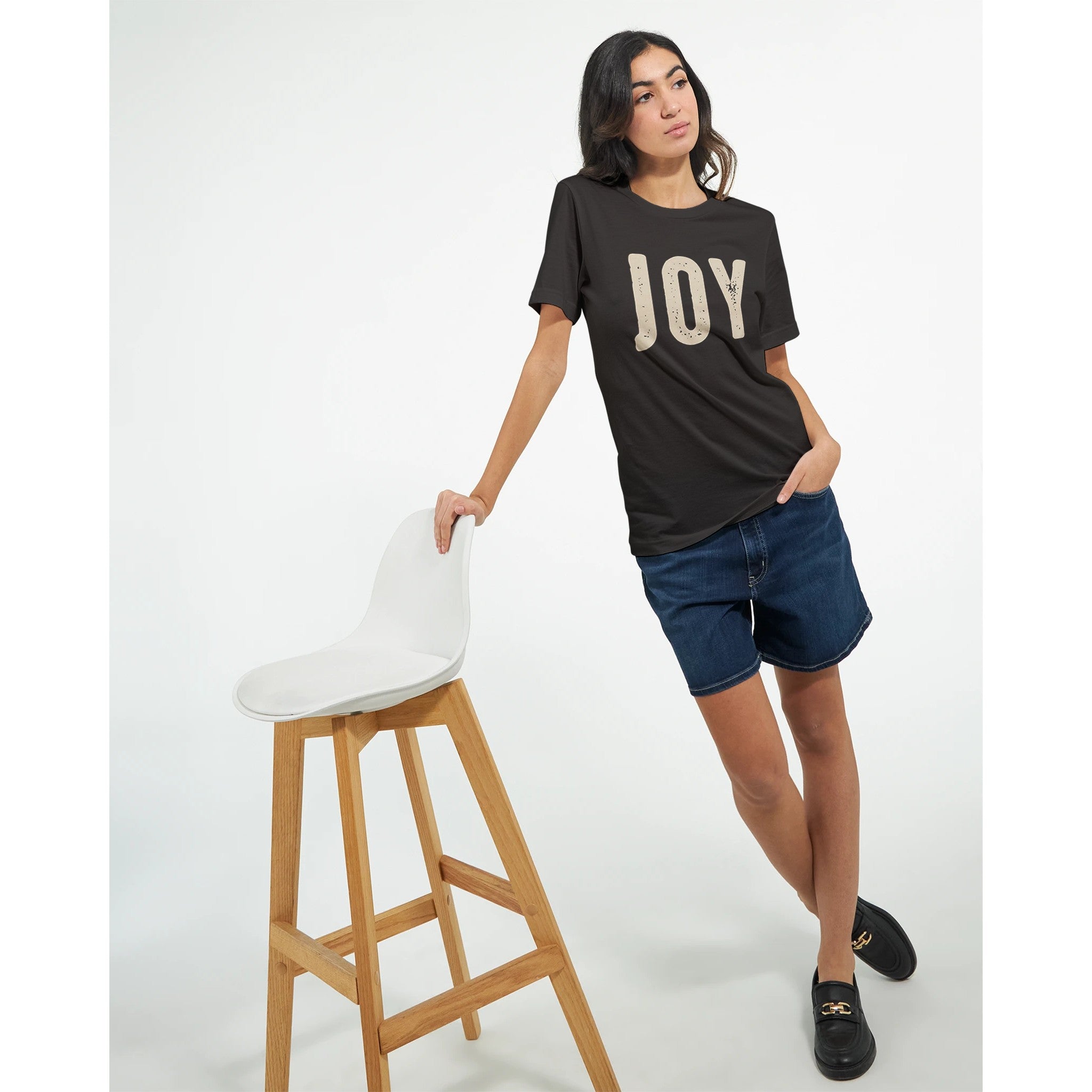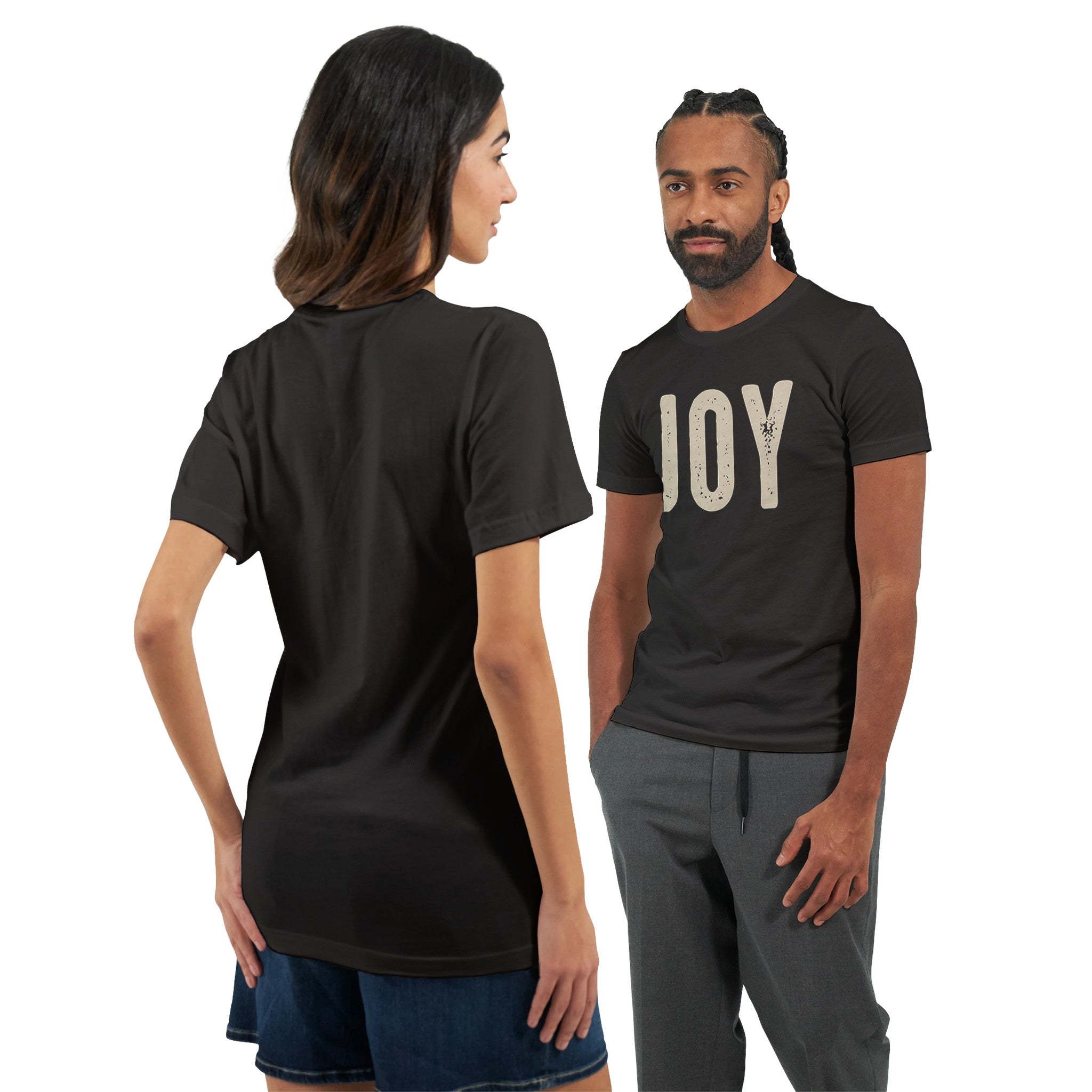 Crafted for comfort and style, this t-shirt features a side-seamed, unisex tailored fit that enhances body contour without sacrificing ease. It's specifically designed with DTG printing in mind, ensuring a clean, vivid print that truly brings the 'Joy' to life. We're proud to produce this tee with eco-friendly processes and materials, so you can feel good about what you wear.