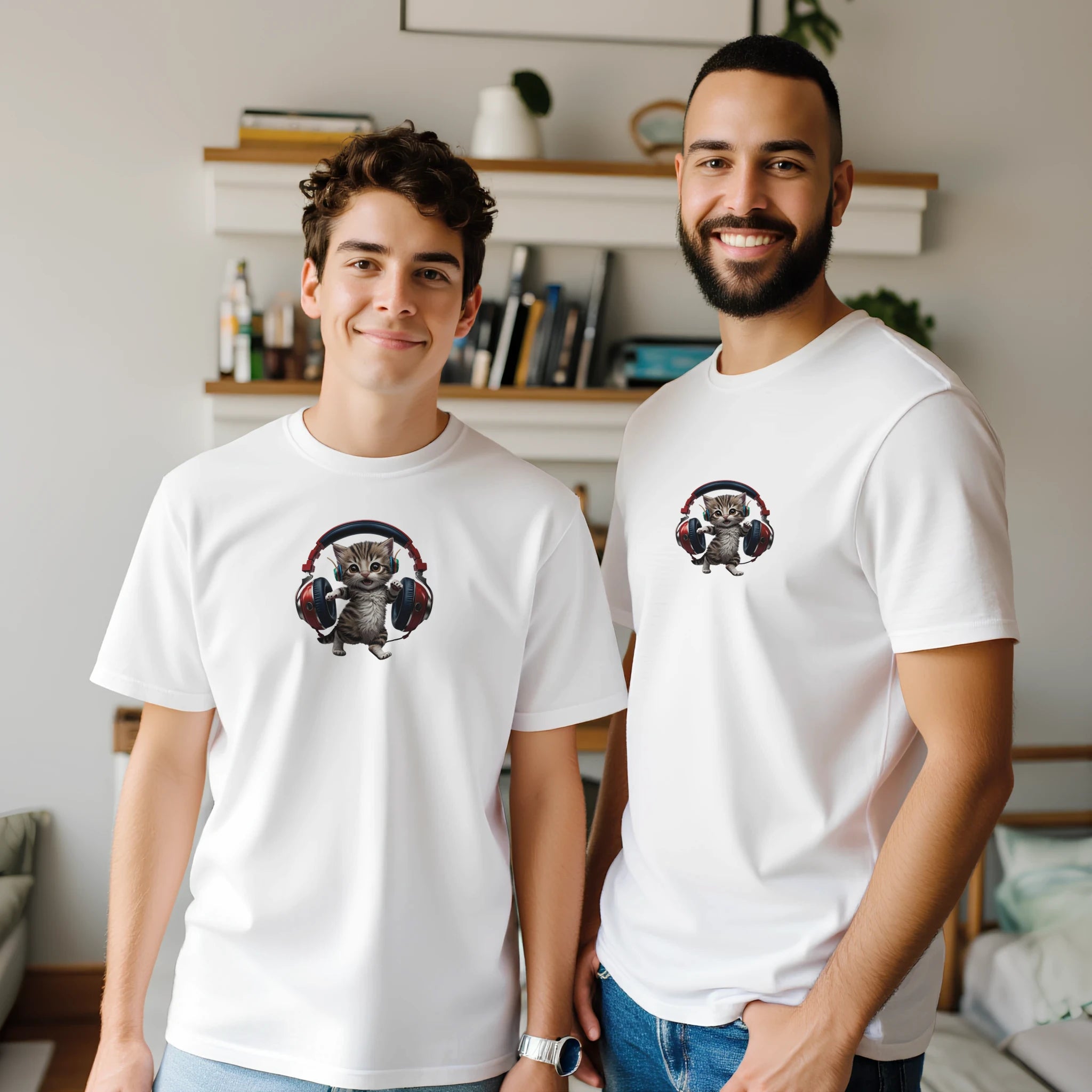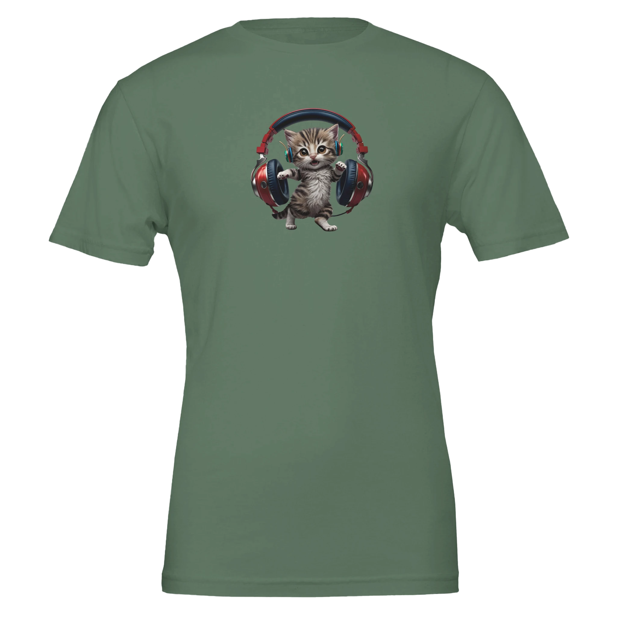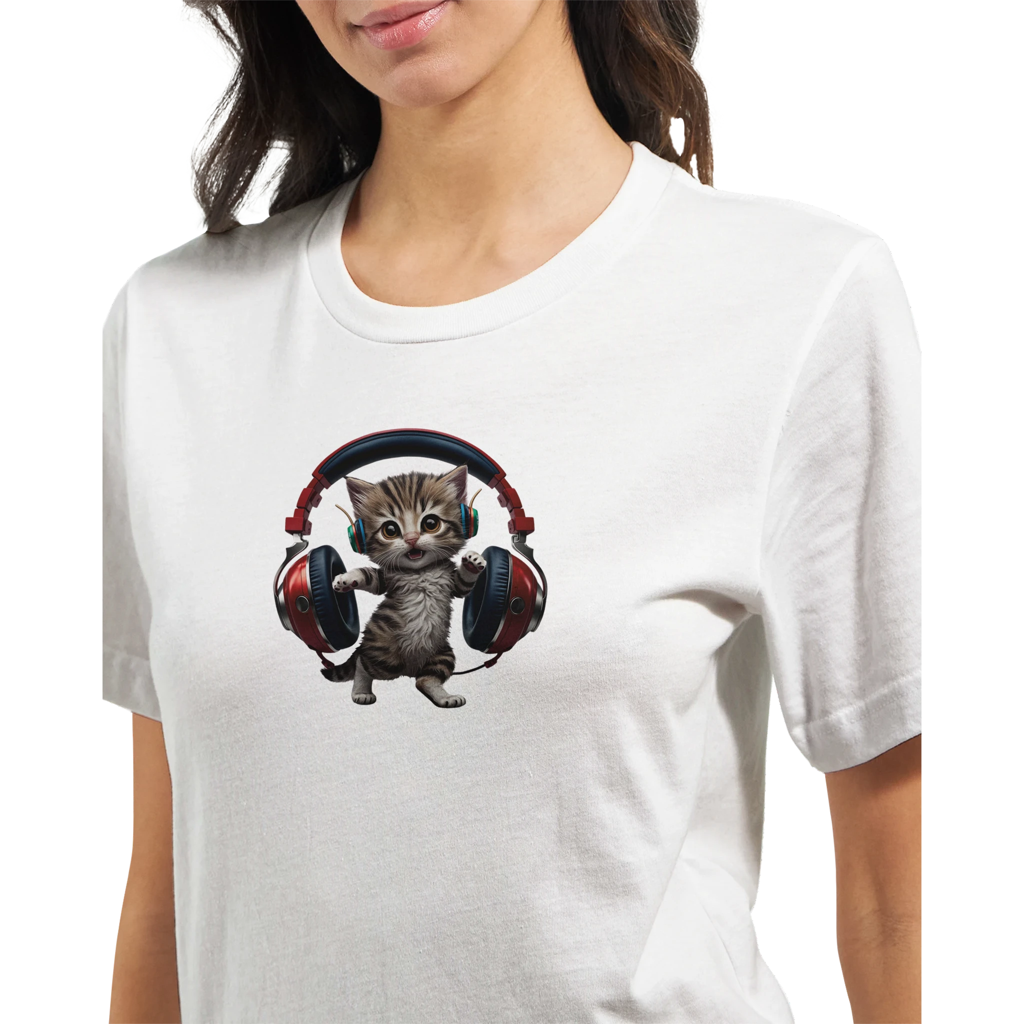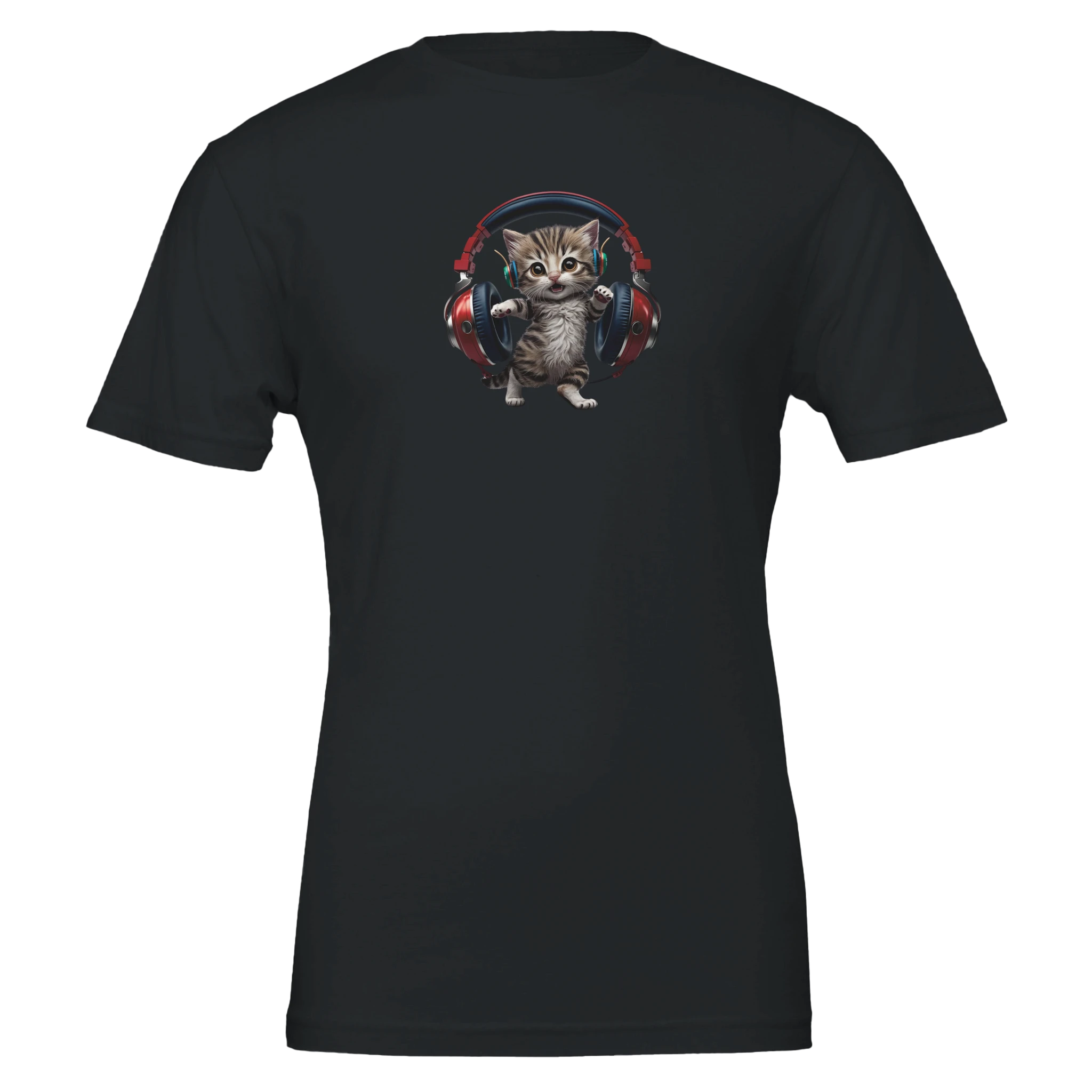 Budget Unisex Crewneck T-shirt/Kitty-Headphones