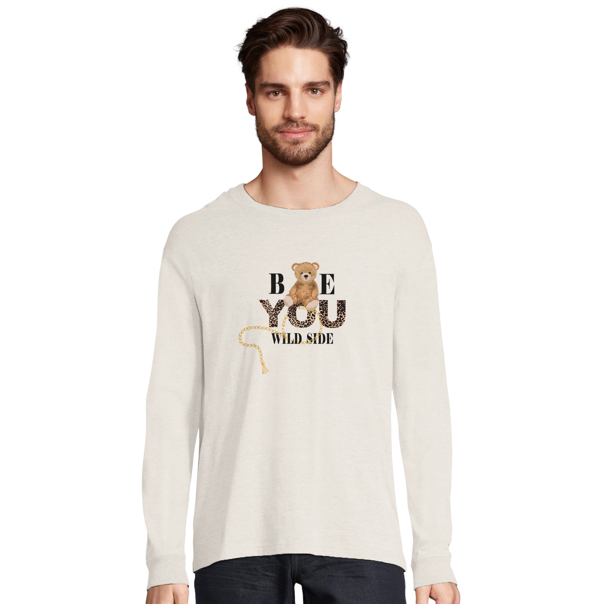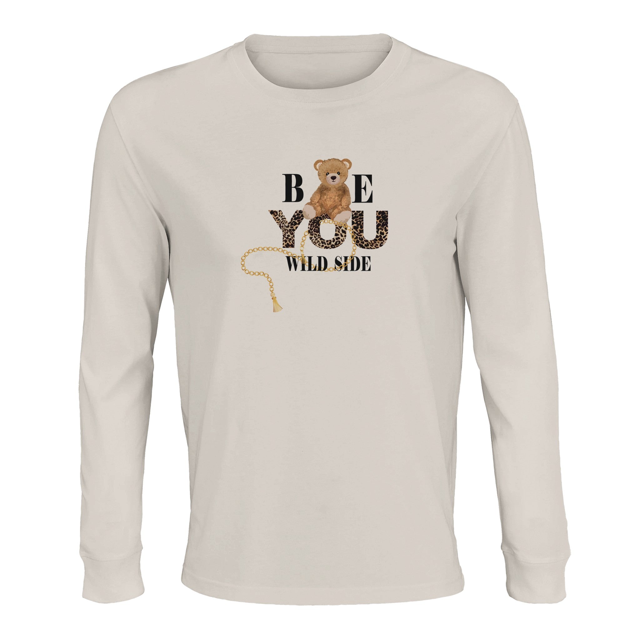 Embrace your unique spirit with our "Be You Wild Side" Unisex Long Sleeve Tee. This statement piece captures a playful yet fierce aesthetic, featuring a charming teddy bear combined with bold leopard print lettering and elegant gold chain accents. It's more than just a t-shirt; it's an invitation to express your authentic self with a touch of untamed style.