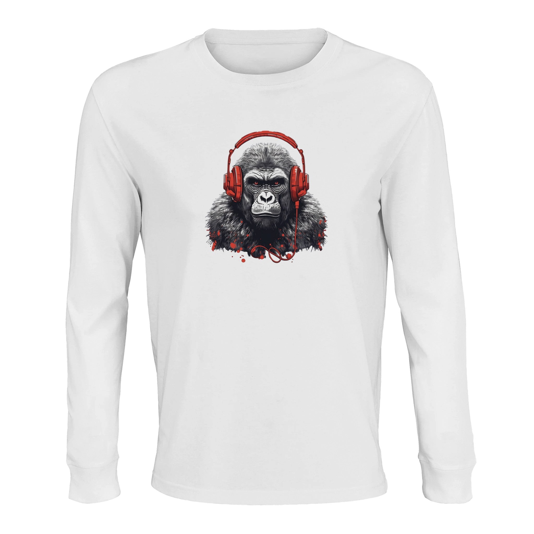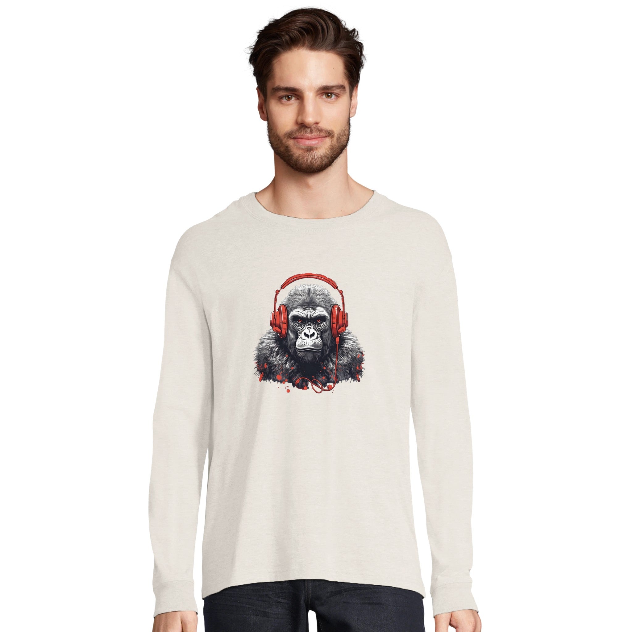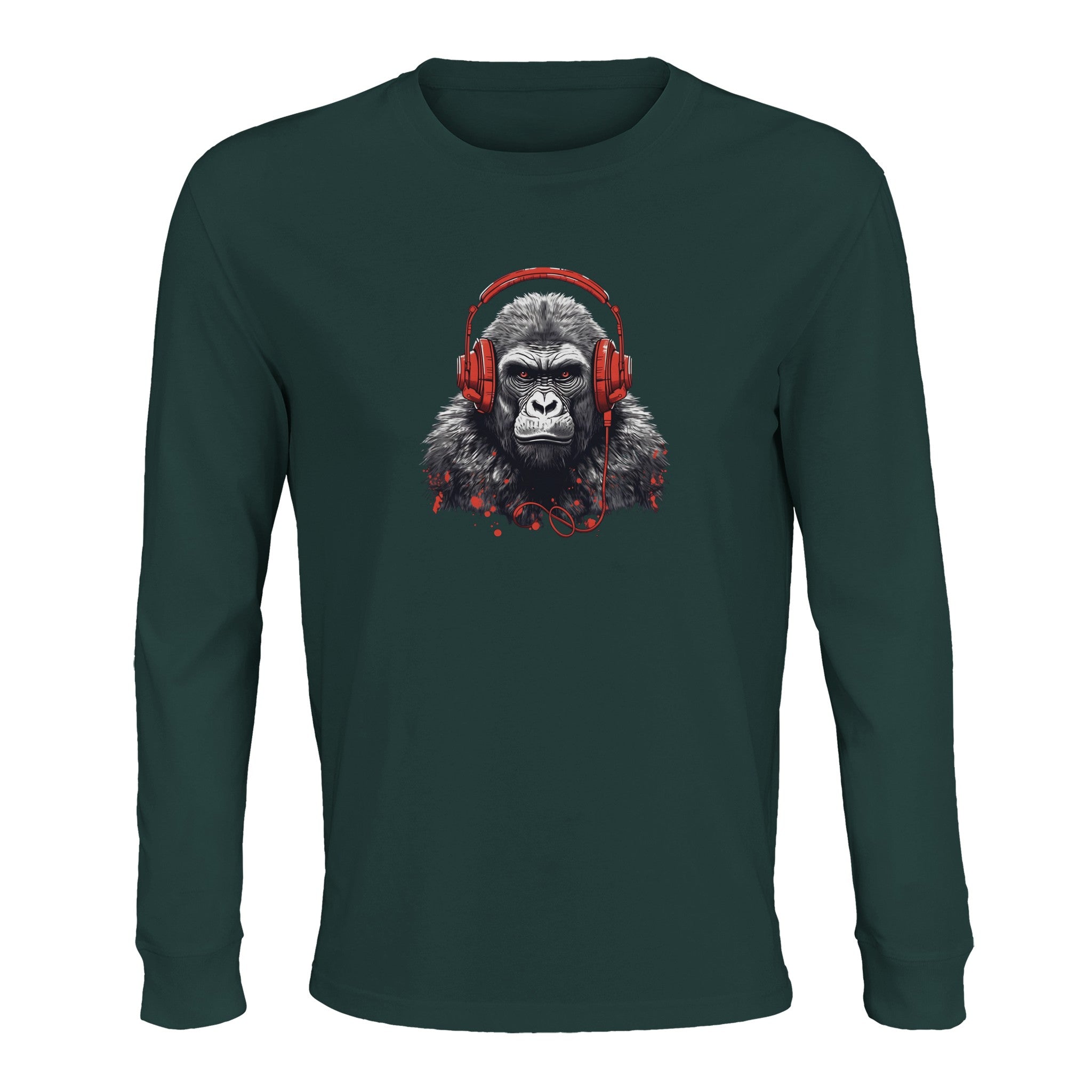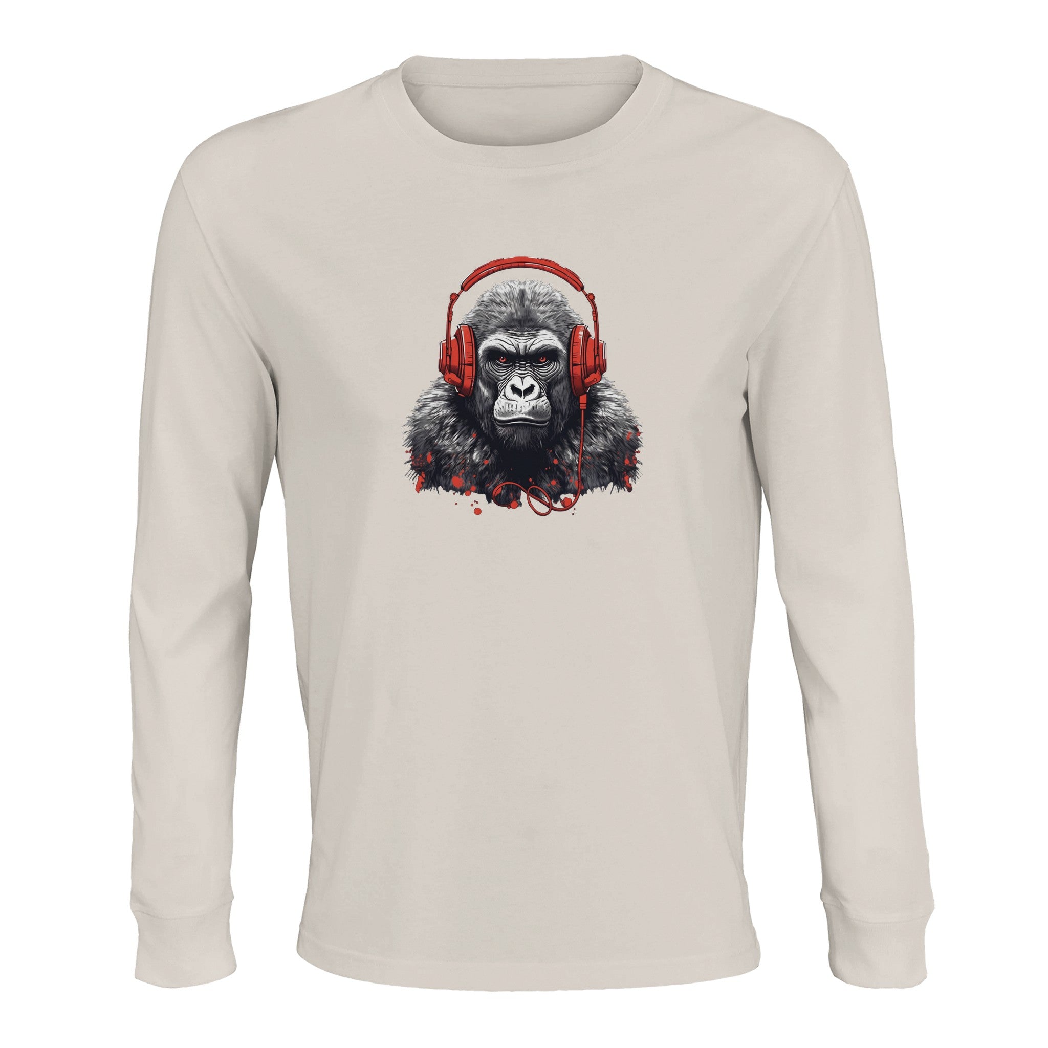 Unisex Long Sleeve Tee/Love-is-dead - Edgy Gorilla Headphones Design in Your Choice of Sustainable Hues