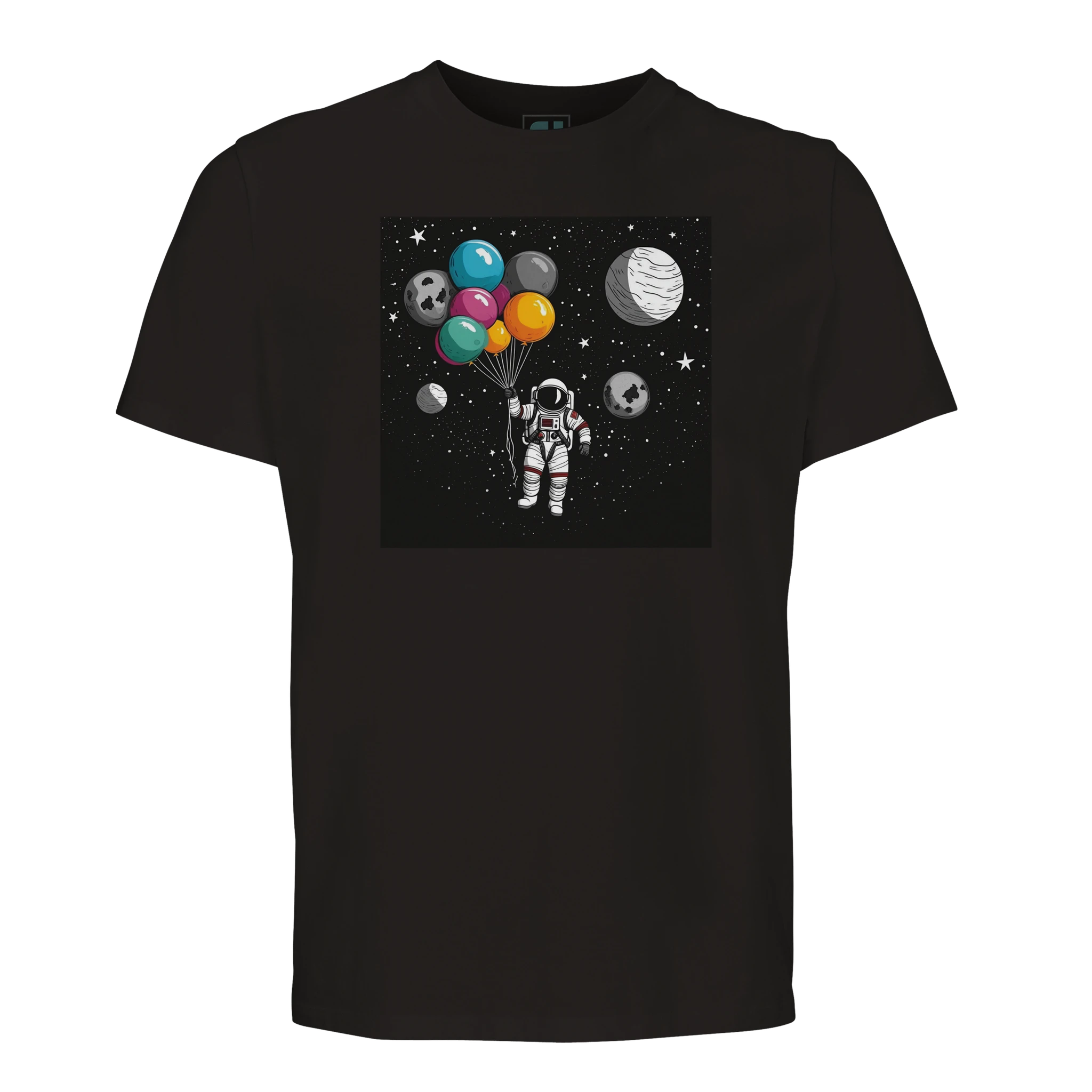 Embrace the wonders of the universe with our Cosmic Adventure T-Shirt, featuring a whimsical design of an astronaut floating among planets while holding colorful balloons. This unique graphic tee combines style, comfort, and sustainability, making it the perfect addition to any wardrobe.