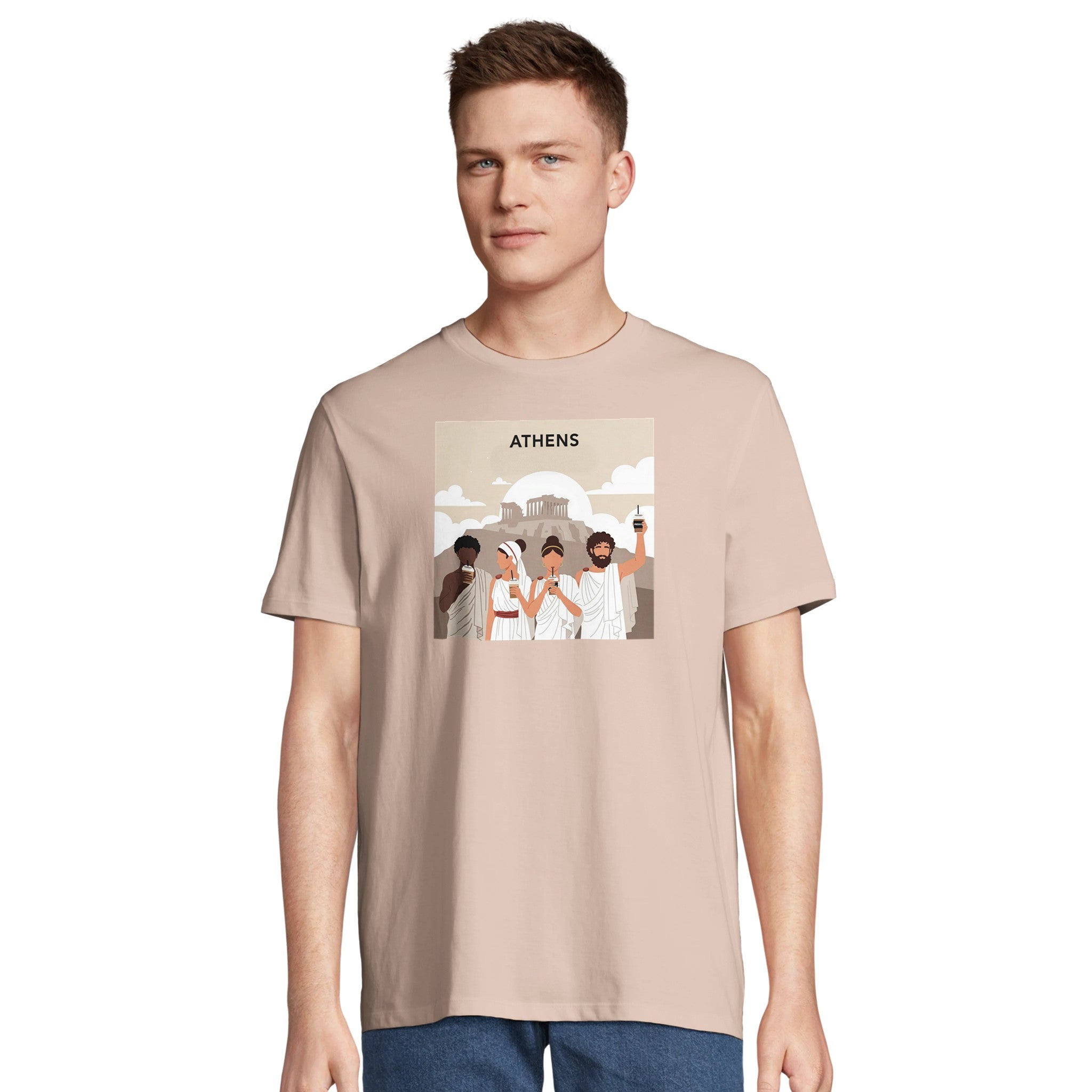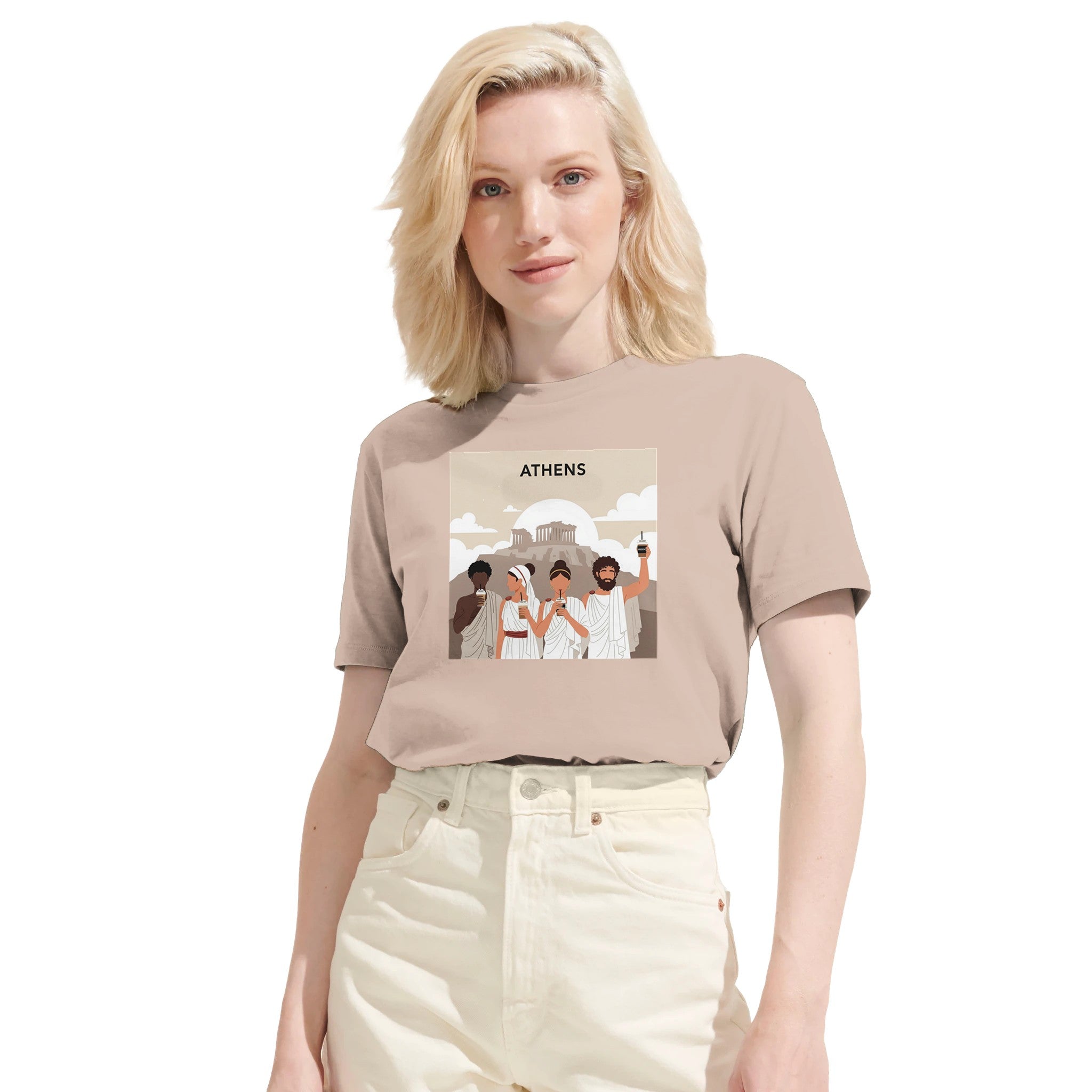 Embrace the timeless allure of Athens with our unique organic cotton tee, where ancient charm meets modern refreshment. This design captures the essence of history and leisure, making it the perfect statement piece for those who appreciate both culture and comfort.